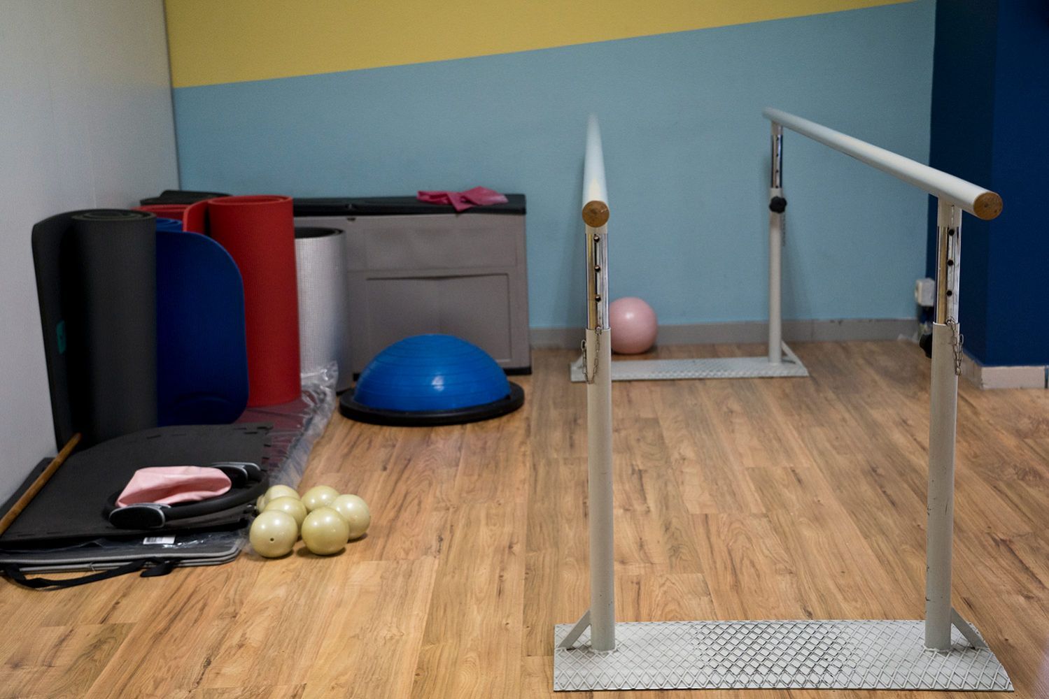 En la sala de gimnasio realizamos los tratamientos de rehabilitación , ejercicios de flexibilización, potenciación, reeducación de la marcha y Pilates.